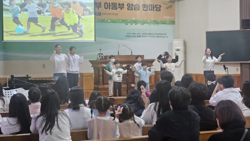 참예수교회 남부연합은 2025. 11/23(일) 아동부 암송한마당을 전주교회에서 하나님의 은혜 가운데 진행되었습니다. 이번 행사에는 64명의 아이들(※교사 65명, 학부모 13명 총 142명)이 참석하여 즐거운 암송 발표, 암송 활동 시간을 가졌습니다.